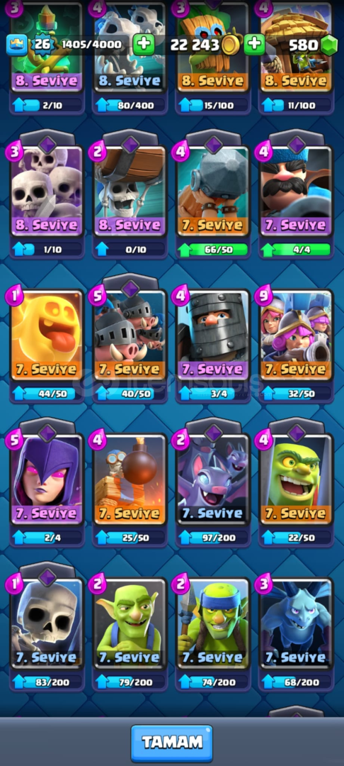 ID bağlıNet kupa 6214550 elmas kahraman MİNİPEKKA, güçlü madenci ve altın şovalyeevo bombacı ve evo okçularhazır mega şovalyeli sağlam deste12lv fişekçi5 adet efsanevi 3X evo iskelet fiçisi parça 3X evo cehennem ejderi parça 2X evo dart parça 2X evokar topu parça 1X joker evrim parça 1 adet goblin emojsi Hızlı ve güvenilir teslimat🥇 ID bağl&...