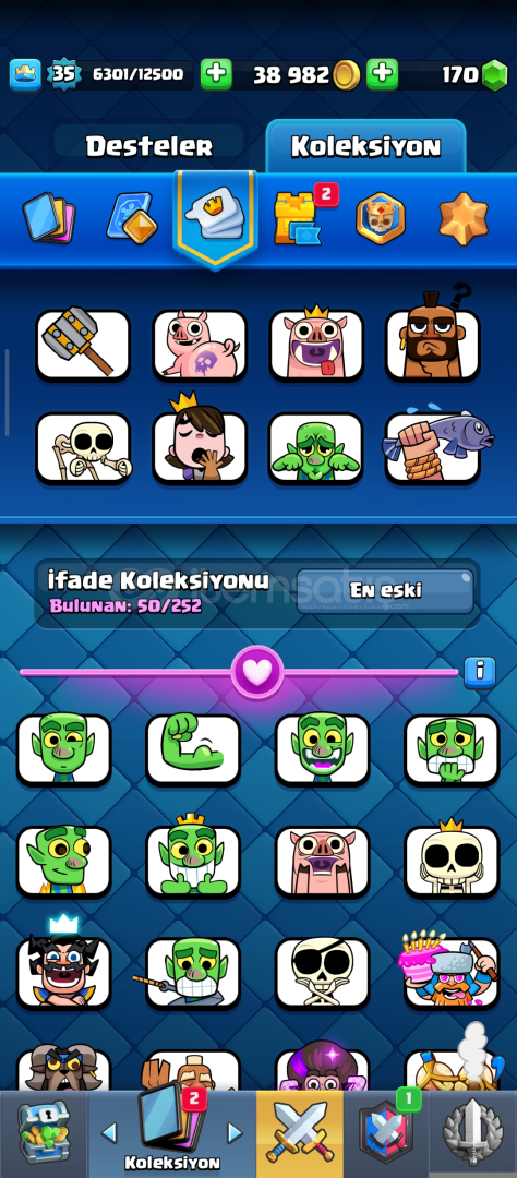 6k kupa şampiyonlar eksiktir sadece 3tane şampiyon kart vardır 50 üstü emojiler Kahraman kart bitane vardır.