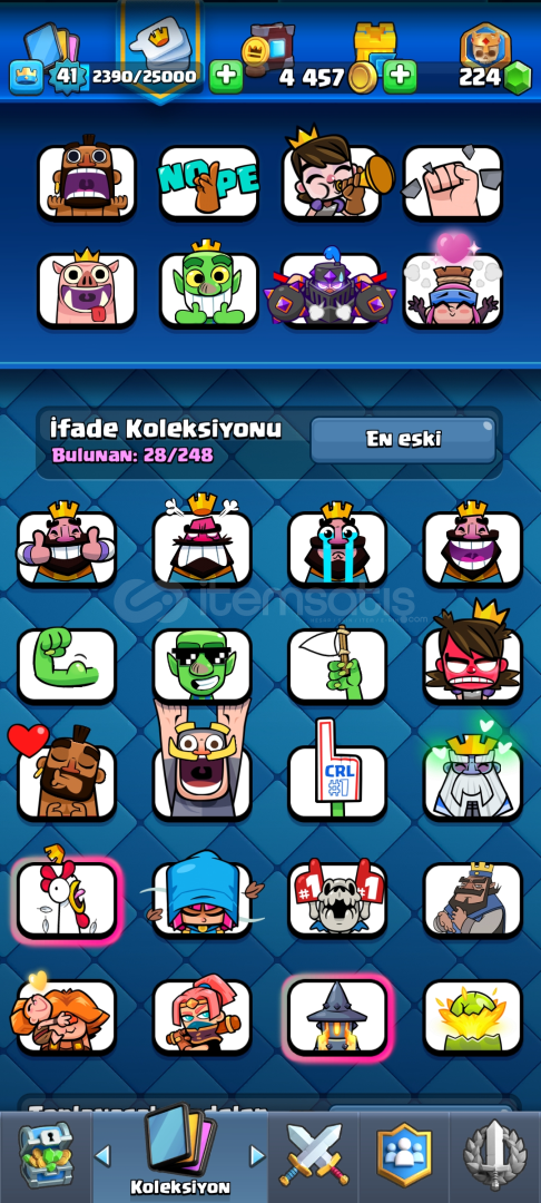 Hesap 41 lwl dirEmek hesabımdır ilk sahibindendir300 elmas mevcut7 evrim mevcut1 elit kart mevcut4 adet kule süslemesiSon derece co nadir emojilerBir sürü büyülü ögelerim mevcut Hesap dopdoludurBakit ihtiyacından dolayı ucuzdan satılıktır şimdiden alıcısına hayırlı olsun efendim...