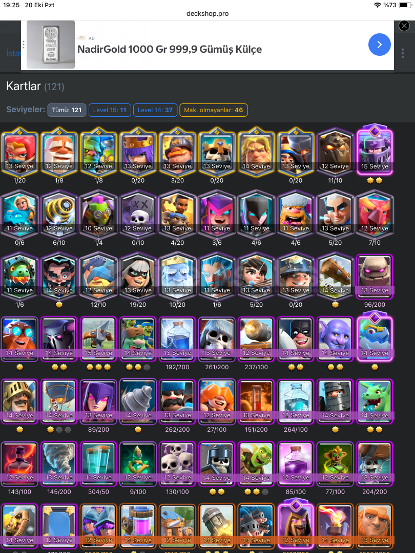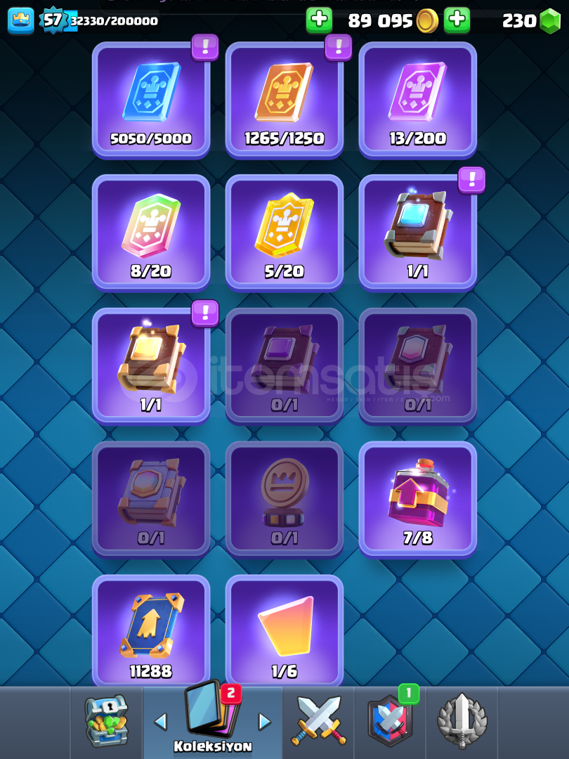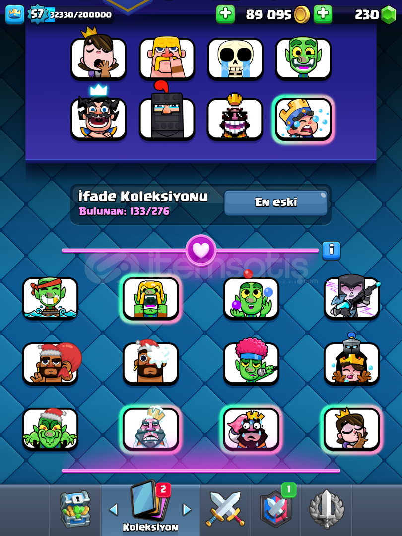 Hesapta 11 Evrim variskeletlerfişekçibombacıdart goblinişövalyeteslaelektro ejderhavanmega şövalyebüyücüokçular olmak üzere.Hesapta çok fazla emoji var ve gerçekten toplamak için çok emek ve vakit ayırdım .Hesapta görselde gördüğünüz gibi kartlar bulunmaktadır 14 seviye olmayan kartların %90ı 14 seviyeye basılmalık.Sıradan ve ender olan...