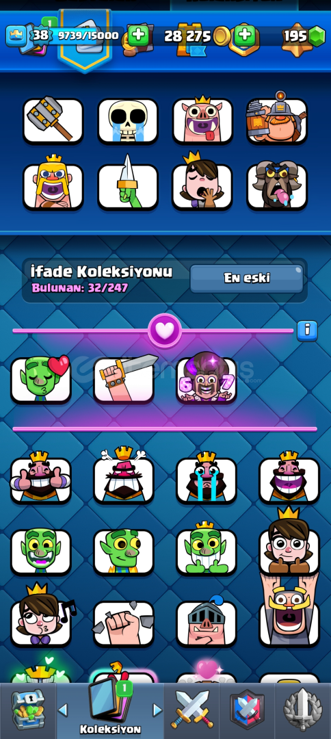 HESAP 6900 KUPA 34 LVLDİR9 ADET EVRİM2 TANE YARIM EVRİM VARDIRKİTAPLARIN HEPSİ VARDIR EFSANEVİ HARİÇ32 ADET EMOTE VE META KARTLAR 11 12 lvldir195 elmas vardırben hesabı kasmaya devam ediceğim pazarlık vardır