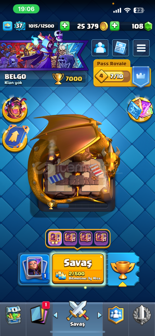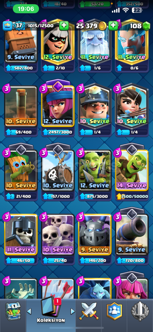 7000 KUPA+ 6 EVRİMLİ +37 SEVİYE+4 kart eksik