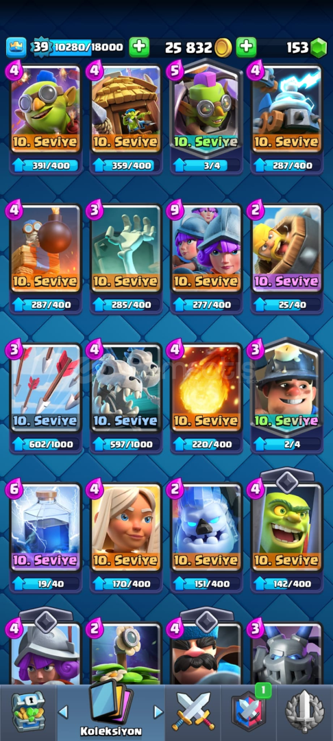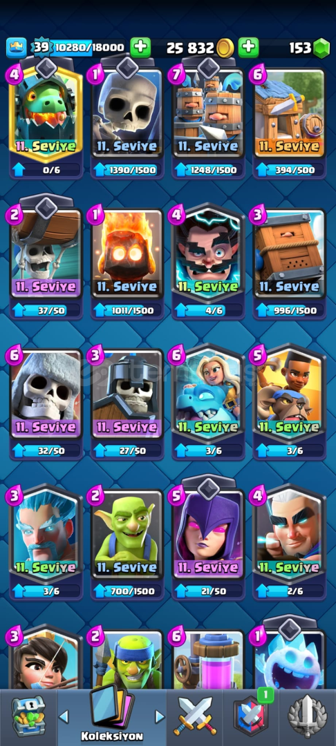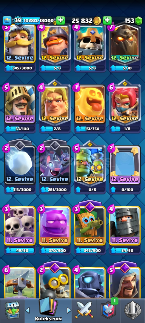 Hesap fotoğraflardaki gibidir hesap 7000 kupadır çok fazla kart vardır 7 tane evrim vardır uygun fiyata