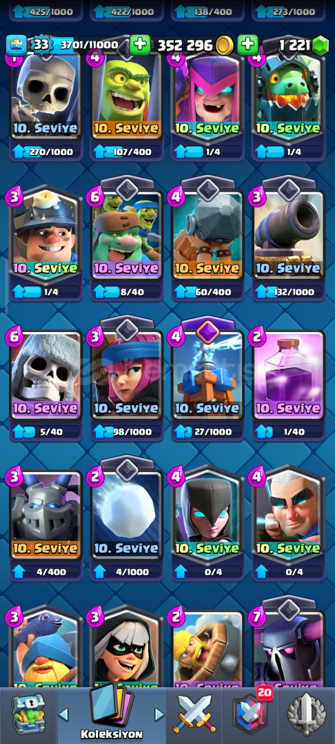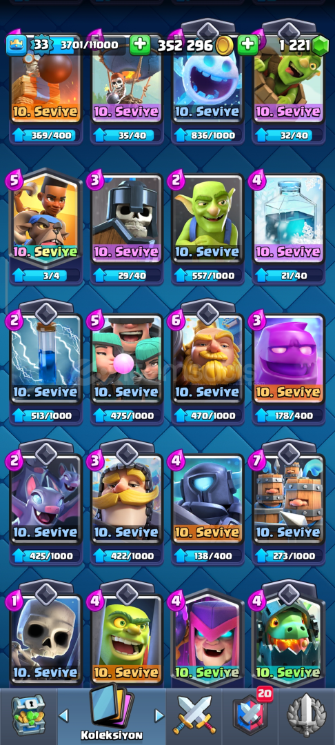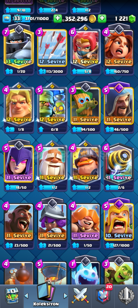 Hesabı eğlencesine kastım sonra oyun sarmadı öylesine satıyomEvrimlerBüyücüBombacıBarbarlarTeslaDart goblinine bir parça kaldı pass royale de şuan iki evrim parçası alınabiliyor