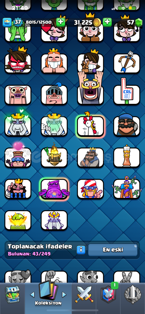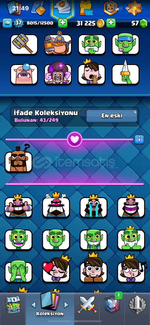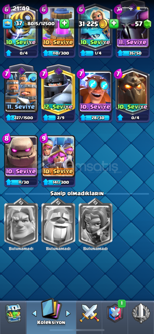 7100 kupada 8 tane evrim açık 1 tane kahraman var sadece 3 kart açılmamış 43 tane ifade var