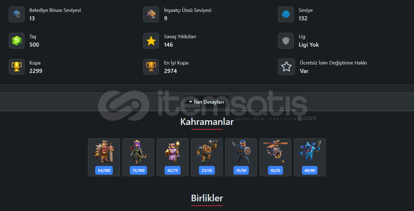 7187 KUPA CLASH ROYALE T13 CLASH OF CLANS HESAP