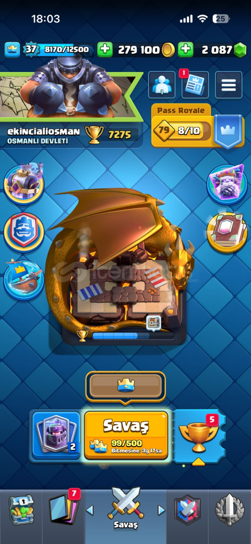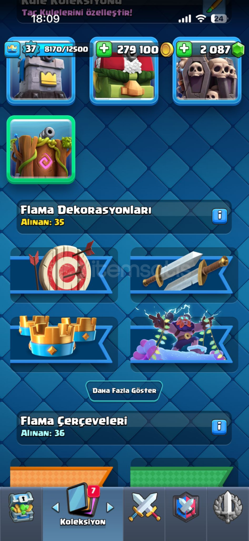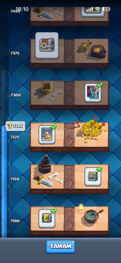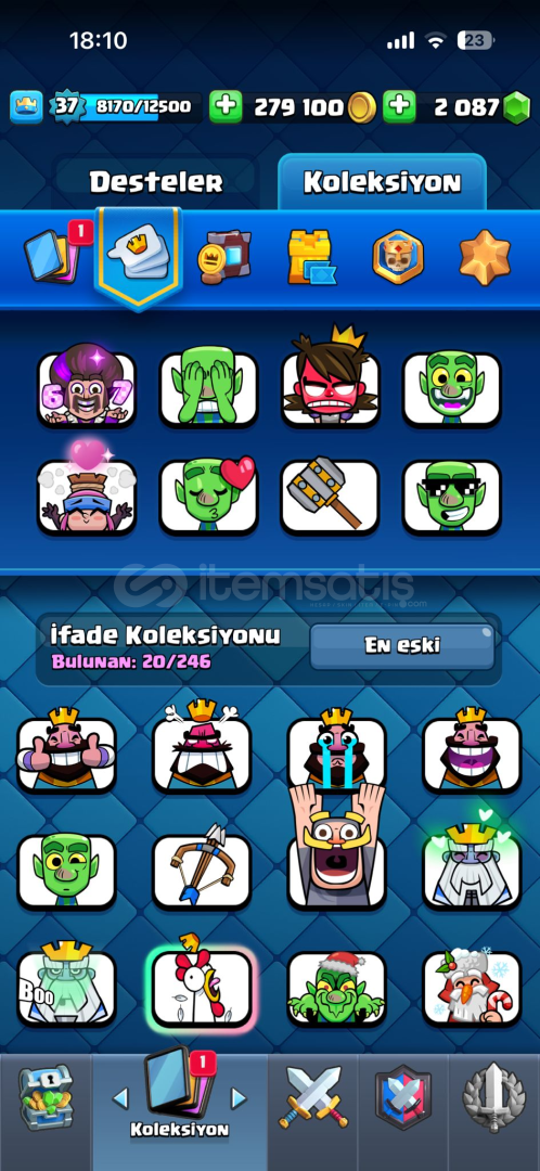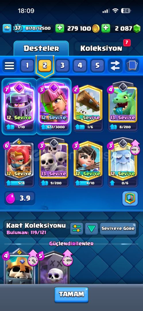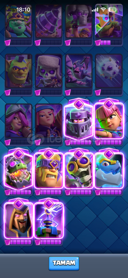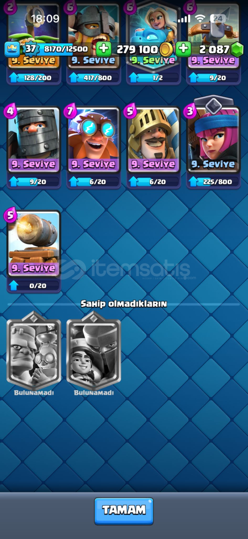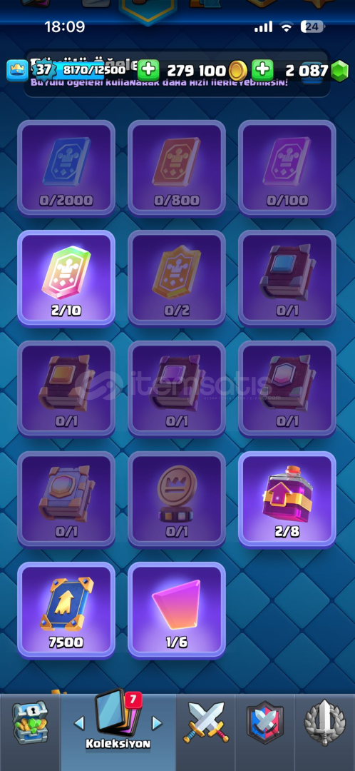ACİLEN SATTIĞIM İÇİN SATIYORUM HESABI UCUZA VERİYORUM DAHA DETAYLI BİLGİLER İSTERSENİZ İLETİŞİME GEÇİN 7275 KUPASADECE 2 TANE AÇILMAMIŞ KARAKTER VAR2087 TAŞ VAR2 TANE JOKER KART VAR1 TANE EVRİM PARÇASI VAR8 TANE EVRİM AÇIK2 3 TANE AZ KALMIS ACILCAK EVRİM VAR2 TANE GÜÇLENDİRME İKSİRİ7500 ELİT JOKER KART VAR