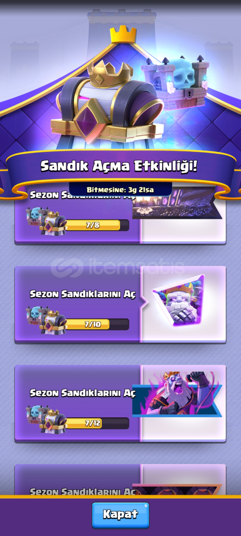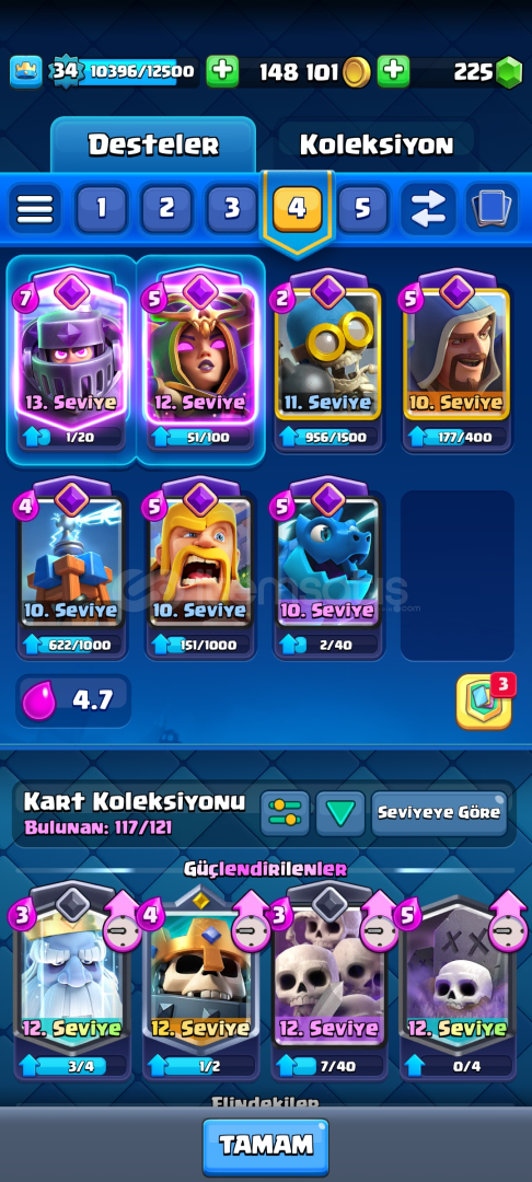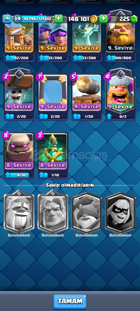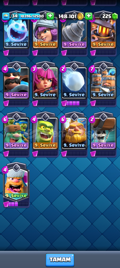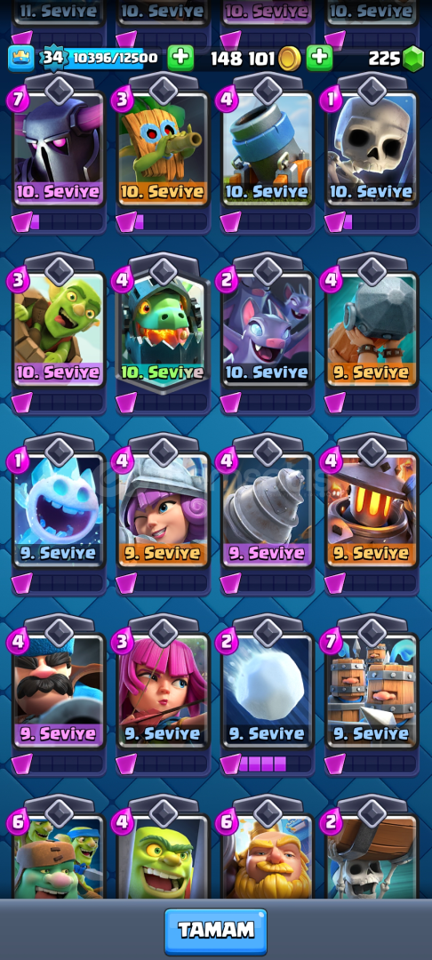 7285 kupa34 lvl25.000 XP sonra 35 oluyor148k altın225 elmas117kart 7 tam evrimMega şövalye CadıBombacıBüyücüTeslaBarbarlarElektro ejterha5 yarı evrimPekka 6/1Dart goblini. 6/1İskeletler. 6/1Dev kar topu 6/4Oduncu. 6/3Süpersel İd isim değisiyorTelefon numarası bağlı değil E posta şifre verilecek E posta gmaidirNormal ederi 480 dir