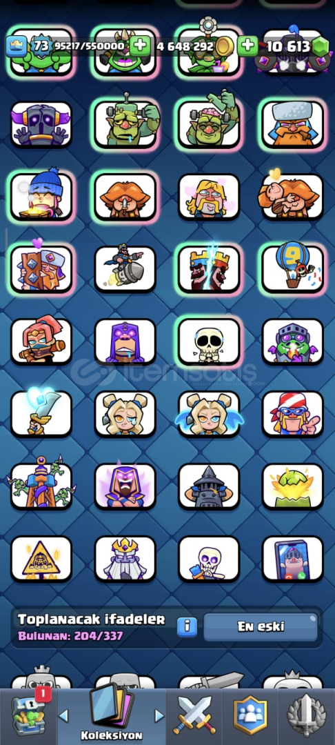 | 73 SEVİYE CR | 20 EVRİM | 204 EMOTE |