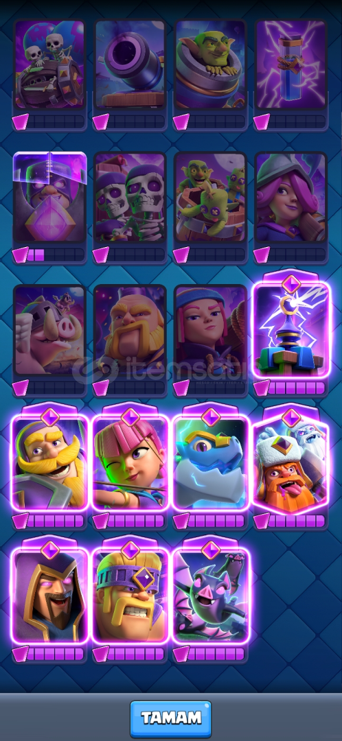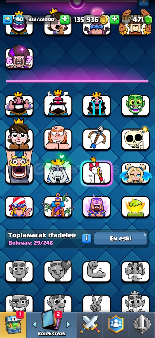 KUPASI: 7300SEVİYE: 40EMOJİ:29KARAKTER:116EVRIM: 8HESAP KORUMASI : yokEKSTRA:15 SEVİYE TESLA , 1 EVRİM PARÇACIĞİ,471 taş