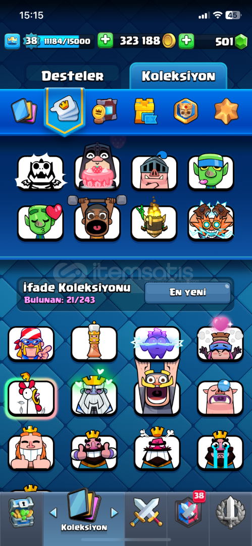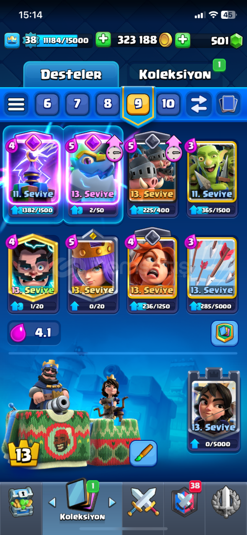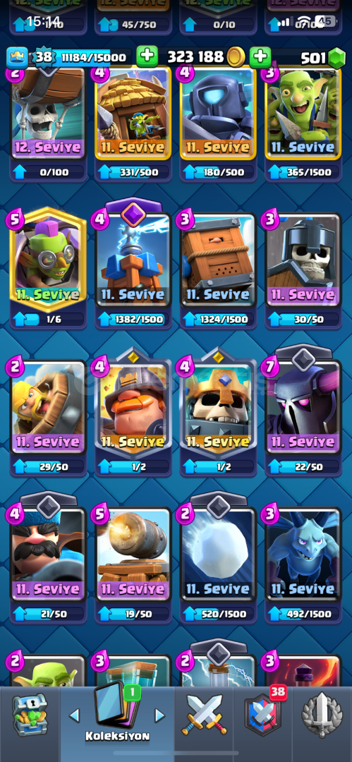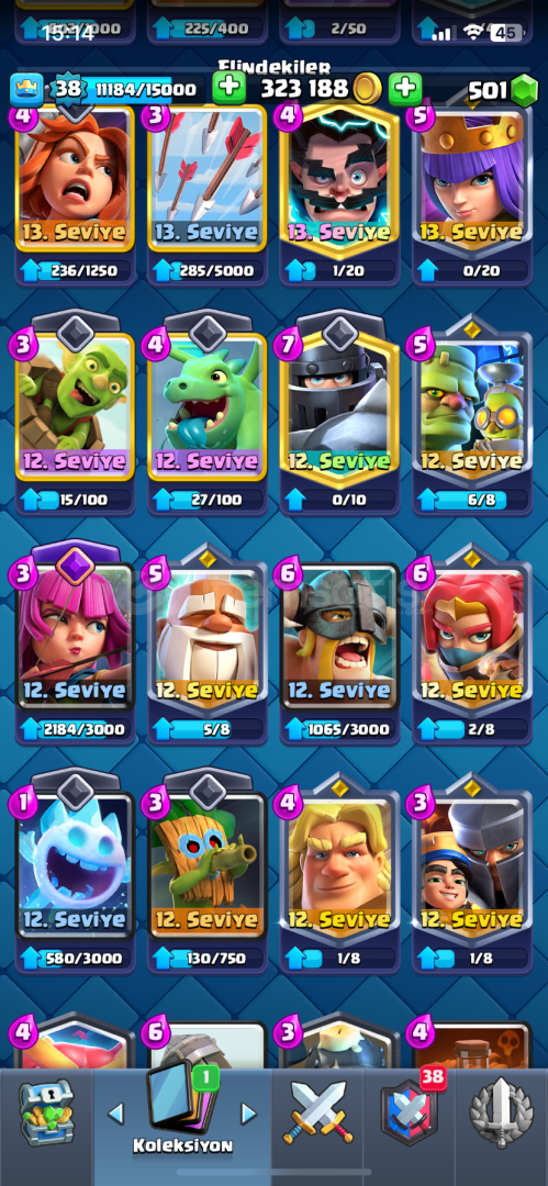 5 evrim var bombacı büyücü okçu elektro ejderha teslaemojiler güzel hesapta 500 taş var zaten alabilirsiniz gelirsetüm kartlar açık eski hesaptıralan kişiye hayırlı olsun