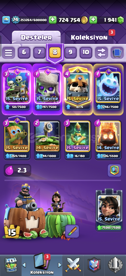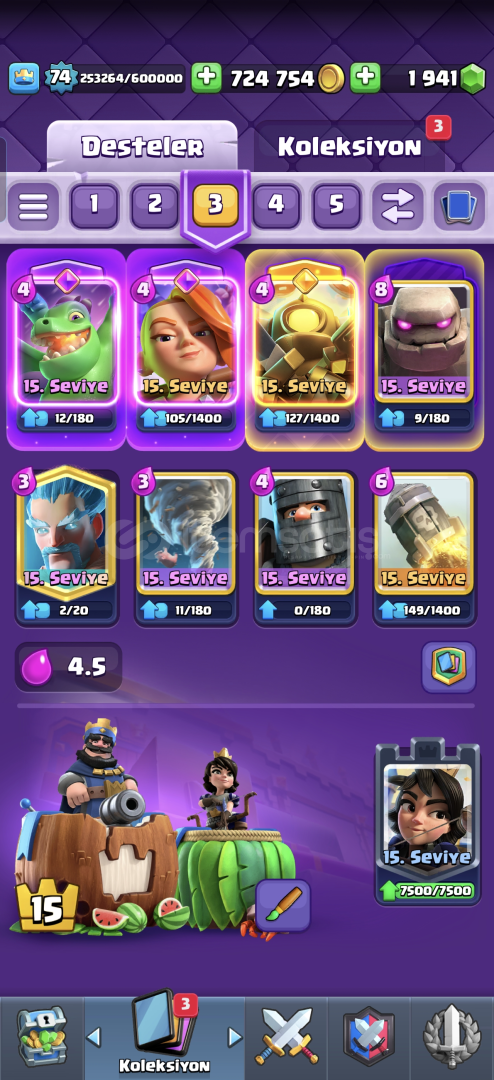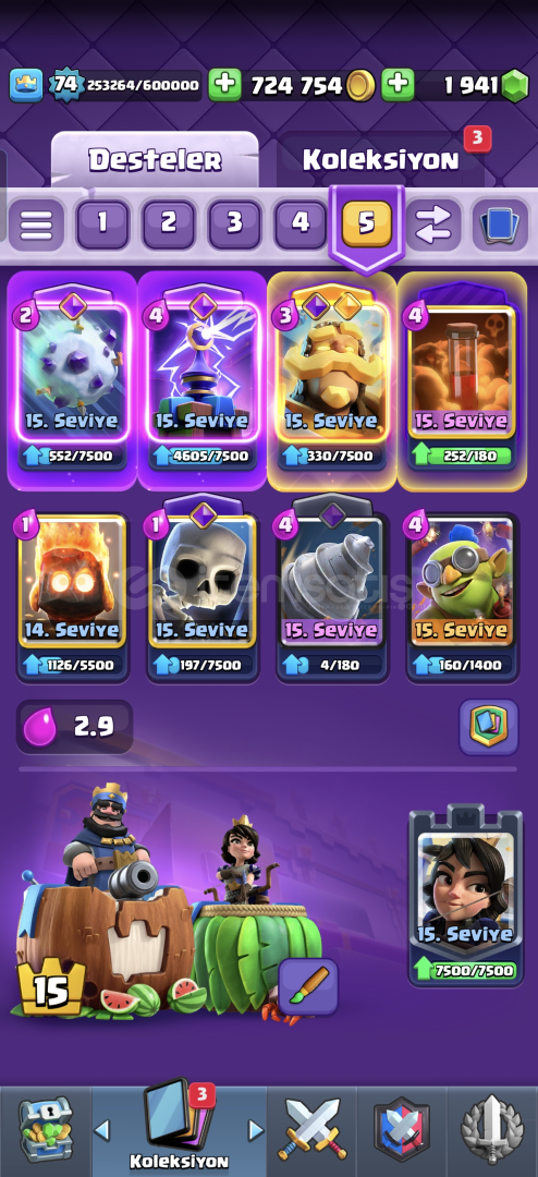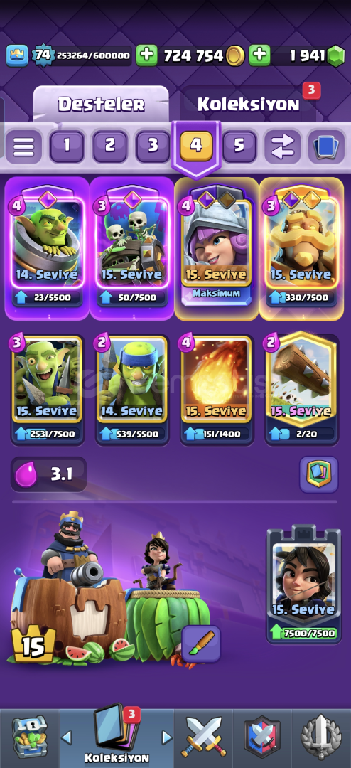 82 MAX 15 SEVİYEFULL EVRİM 2 TANE EKSİK BARBARLAR VE KOSTEBEK750 BİN ALTINPASS ROYEL ACİK2 KAHRAMAN ACİK MİNİ PEKKA VE ŞÖVALYE2000 ELMAS500 ELMAS KARŞILIĞI İSİM DEĞİŞİKLİĞİHESAP KORUMA AKTİF DEGİL .MAİL DEĞİŞİR