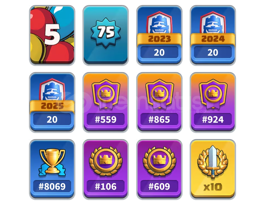 -Derecelide Top 500 rozetleri alınmıştır.-Global Turnuvada Top 100 rozetleri alınmıştır.-CRL 2023-2024-2025 20 Win rozetleri alınmıştır ve bu zamana kadar CRL de verilen her nadir emoji alınmıştır-Bu özellikleriyle Türkiyede ki nadir hesaplardan birisidir.-10x Büyük Mücadele ve 10x Küçük Mücadele tamamlanmıştır.Hesapta 4 Milyon altın vardır.-Hesa...
