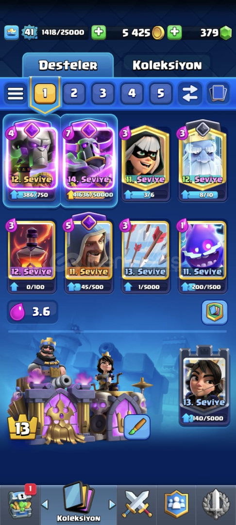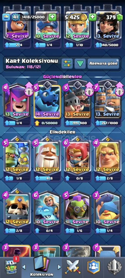 Hesaba detaylıca bakmak için: https://royaleapi.com/player/CYGQ29JCVHesaplar asla geri çekilmez!Hesap koruması aktif değildir!Yeni güncelleme sebebiyle sezon geçişlerinde CLASH ROYALE HESAPLARINDA kupa kaybı yaşanabiliyor bilginize.Sipariş Sonrasında oluşacak sonular için kalıcı destek!"Neden beni tercih etmelisiniz?"+660 Başarılı işlem.Yüksek müşteri memnuniyeti.Supercell ...