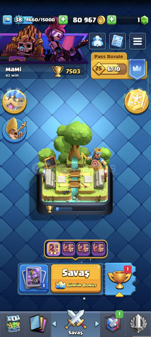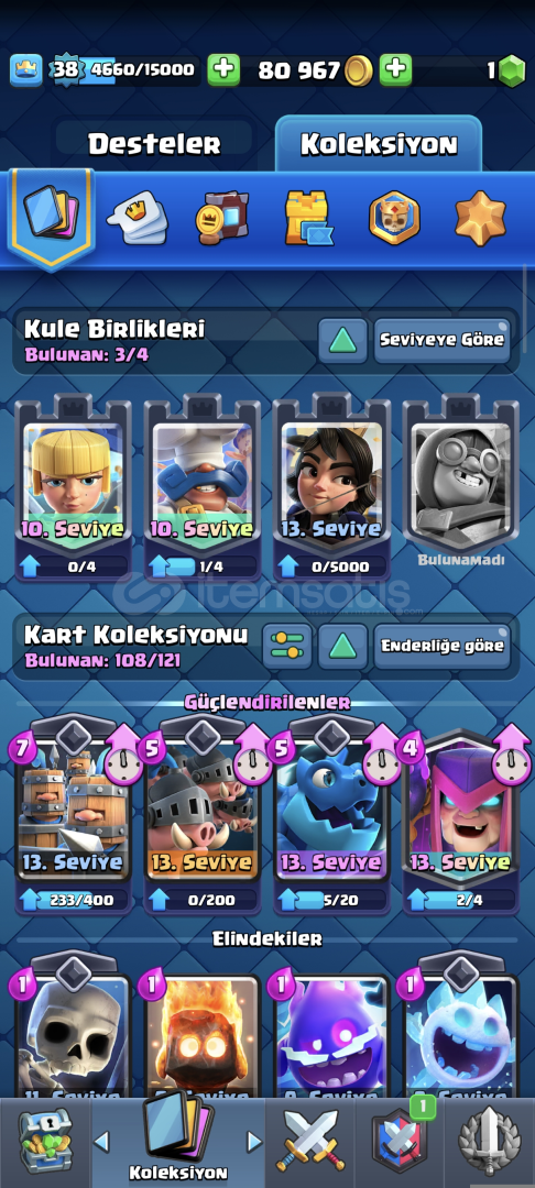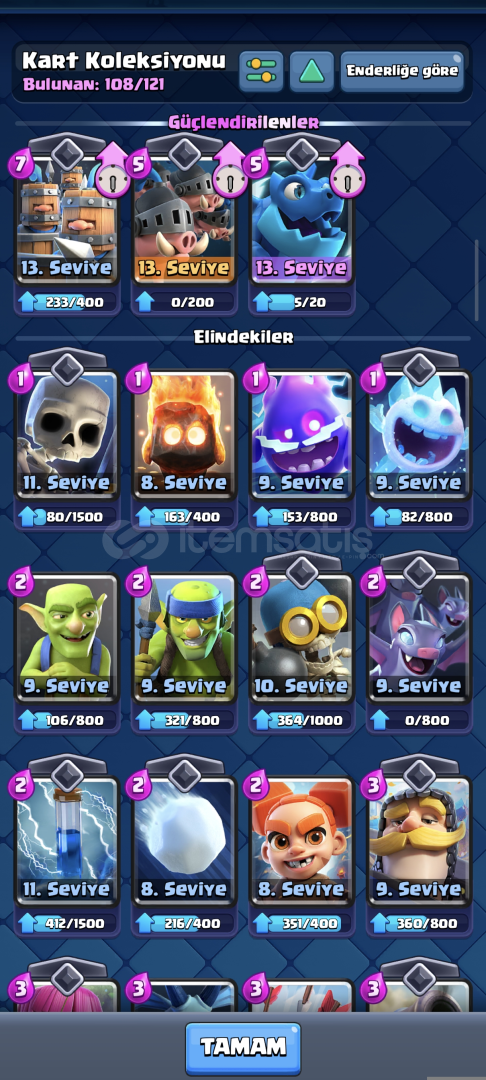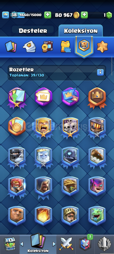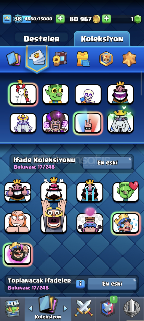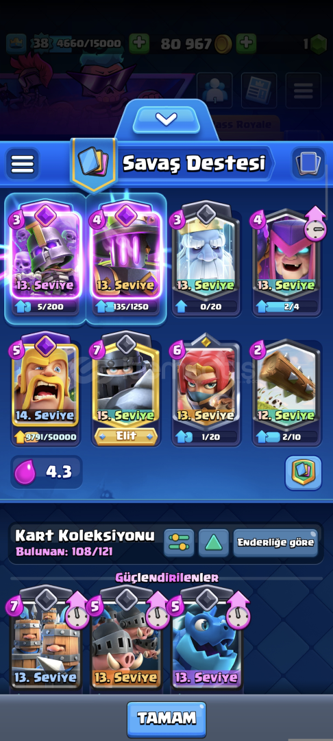 7500kupali 38 level 108/121 17 ifade var 1 kez pass royale alındı 3 evrim var