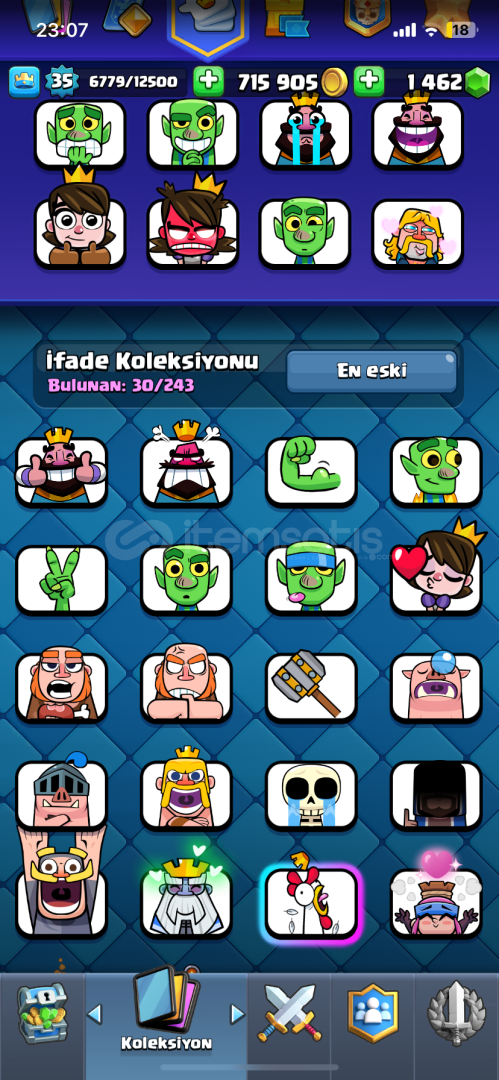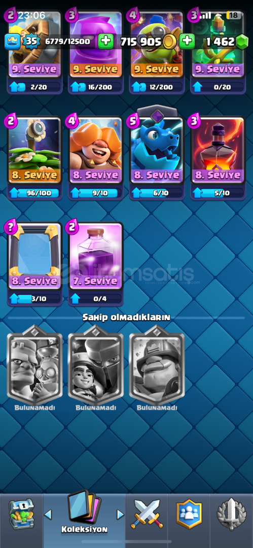 ⭐️Hesap 7623 kupadır hesap koruması bağlı değildir sadece supercell ID bağlıdır.⭐️Hesapta 118 açık kart ve 4 evrim bulunmaktadır (dart goblini,muhafızlar,barbarlar,bombacı)⭐️Hesap 30 ifadeye sahiptir ekstradan hesapta 1462 taş bulunmaktadır.✅Hesap, size kendi e-postasıyla birlikte teslim edilecektir. E-posta yalnızca bu hesap için açılmı&#...