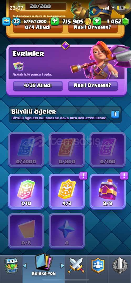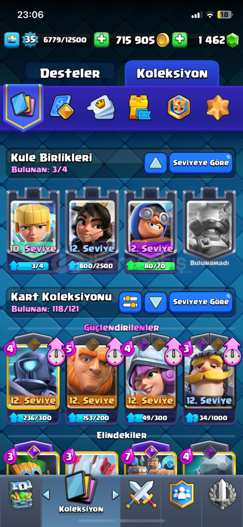 ⭐️7600 Kupa 118 Kart+4 Evrim+1400 Taş⭐️