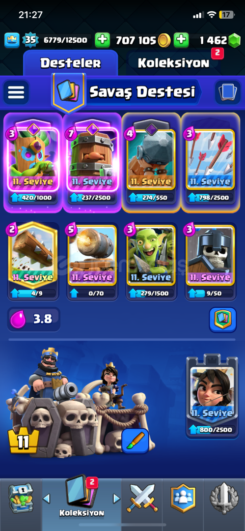 ⭐️Hesapta 118 açık kart ve 4 evrim bulunmaktadır (dart goblini,muhafızlar,barbarlar,bombacı)