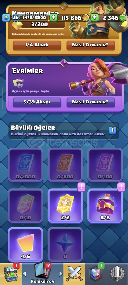 | 7600 KUPA | 36 SEVİYE | 5 EVRİM |