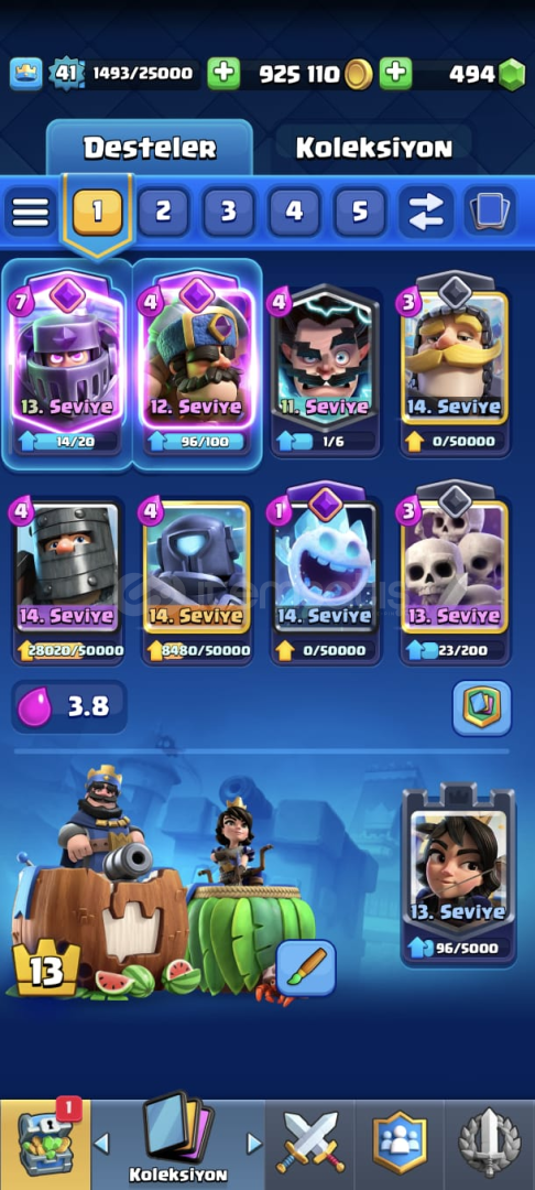 Eposta:şifre formatında ve hesabı nasıl üzerinize alacağınızın hakkında bütün bilgiler satın alınca otomatik iletilecek!Hesaba detaylıca bakmak için:https://royaleapi.com/player/PYJ9CCR29Hesaplar asla geri çekilmez!Hesap koruması aktif değildir!Yeni güncelleme sebebiyle sezon geçişlerinde CLASH ROYALE HESAPLARINDA kupa kaybı yaşanabiliyor bilginize.Fiyatlandırmalar g...