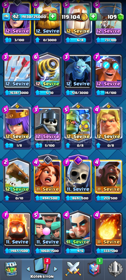7600 kupa 42 seviye 3 evrim 118 kart UCUZA!!