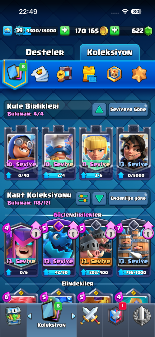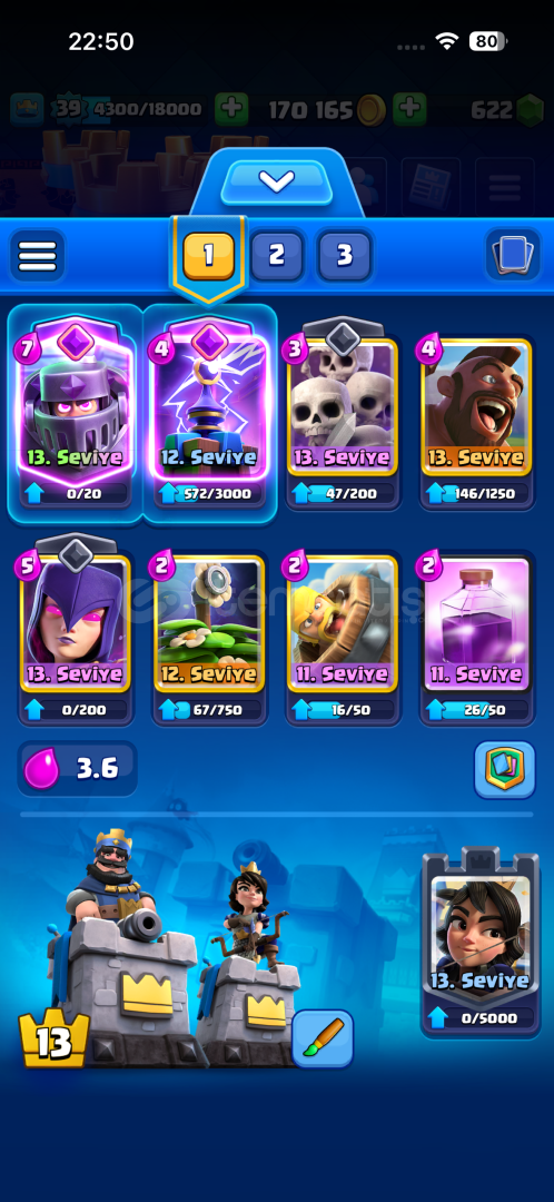 HESAP GÖRÜNDÜĞÜ GİBİ FOTOĞRAFLARDA HERŞEY GÖZÜKÜYOR SADECE 3 ŞAMPİYON KART YOK CUZİ MİKTARDA İNDİRİM OLUR 7 EVRİMLİ KART VAR