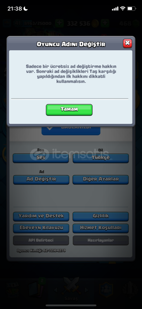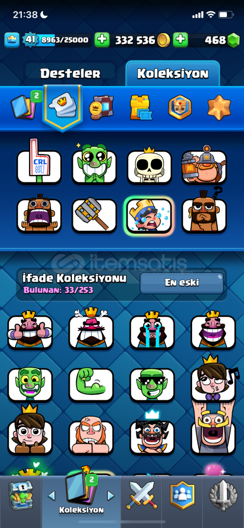 En iyi Clash Royale hesaplarıyla oyunda fark yaratın! Hedeflerinize ulaşmanız için ideal hesaplar burada.Clash Royale Hesap İçeriği :6 adet evrim,4karttsdayari basılmış evrim1 tane 15 sv kart332k altın 463 elmas118KART ( Oyunda 121 Kart bulunuyor )7710 Kupa33 Emoji3 Kule Deseni41 LevelVe Daha FazlasıSorularınızı ve isteklerinizi mesaj kısmından bize iletebilirsini