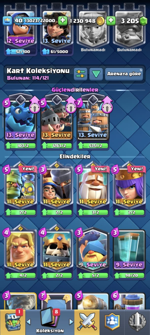 Hesaba detaylıca bakmak için: https://royaleapi.com/player/2LCRCJGPHesaplar asla geri çekilmez!Hesap koruması aktif değildir!Yeni güncelleme sebebiyle sezon geçişlerinde CLASH ROYALE HESAPLARINDA kupa kaybı yaşanabiliyor bilginize.Sipariş Sonrasında oluşacak sonular için kalıcı destek!"Neden beni tercih etmelisiniz?"+660 Başarılı işlem.Yüksek müşteri memnuniyeti.Supercell o...