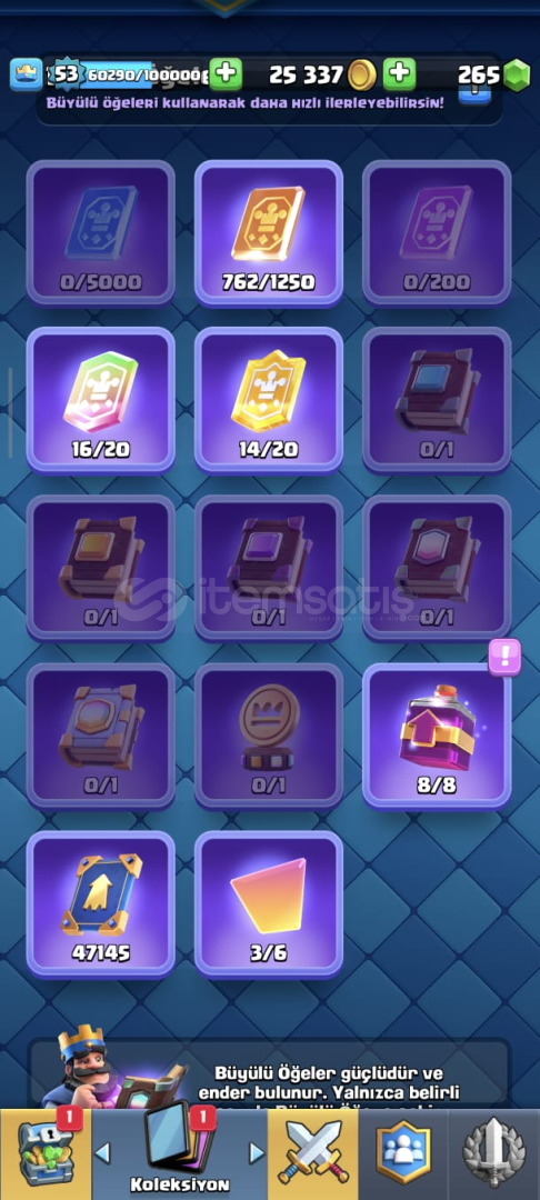 Otomatik teslimattır aktif olmasamda alabilirsiniz!Eposta:şifre formatında ve hesabı nasıl üzerinize alacağınızın hakkında bütün bilgiler satın alınca otomatik iletilecek!Hesaba detaylıca bakmak için:https://royaleapi.com/player/QGG9CPLGHesaplar asla geri çekilmez!Hesap koruması aktif değildir!Yeni güncelleme sebebiyle sezon geçişlerinde CLASH ROYALE HESAPLARINDA kupa kayb...