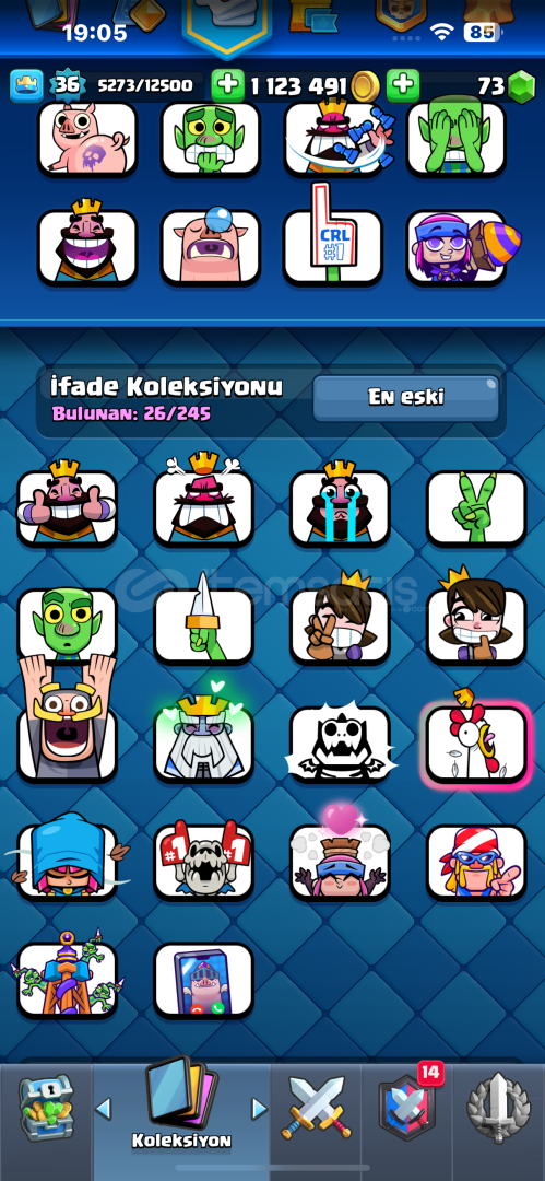 8 Evrim bulunmaktadır seviyeler yüksektir 3 şampiyon kart eksiktir sadece mega şövalye evriminin alınmasına 2 Evrim parçası kalmıştır birçok evrimi yarılanmış karakter bulunur pekkanın evrimi bulunur