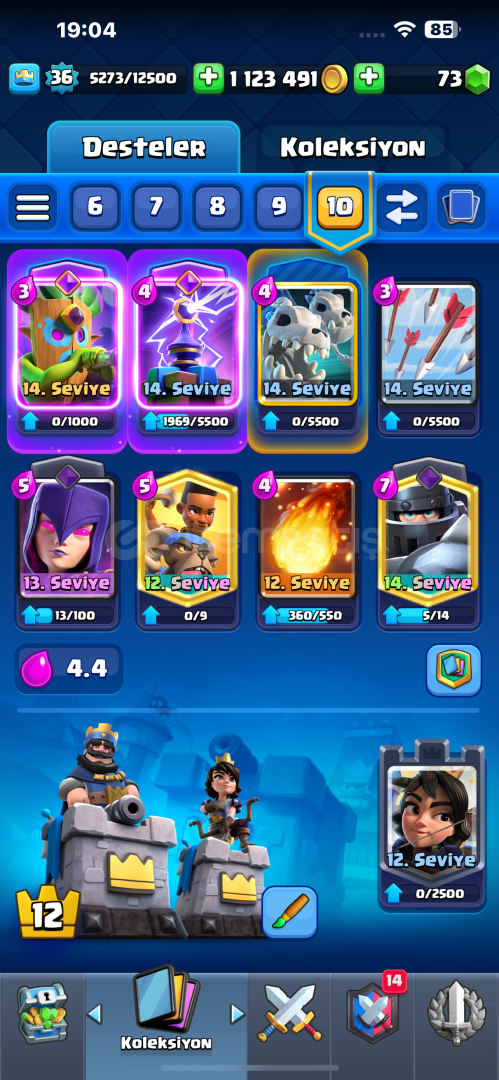 8 Evrim bulunmaktadır seviyeler yüksektir 3 şampiyon kart eksiktir sadece mega şövalye evriminin alınmasına 2 Evrim...