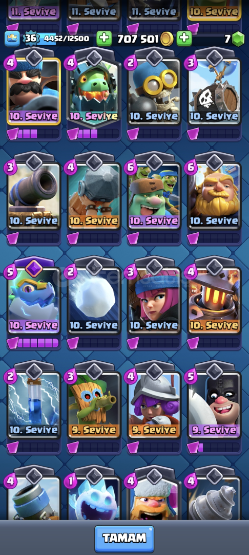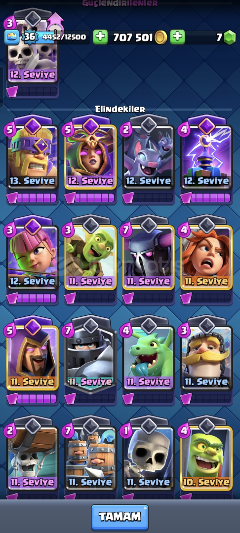 Clash Royale hesap — 7030 Kupa | Seviye 35 | Altın 785.158 | Taş 597 | Evrimler ( 5 ): Cadı, Tesla, Barbarlar, Okçular , elektro ejder , büyücü |Güvenilir,.