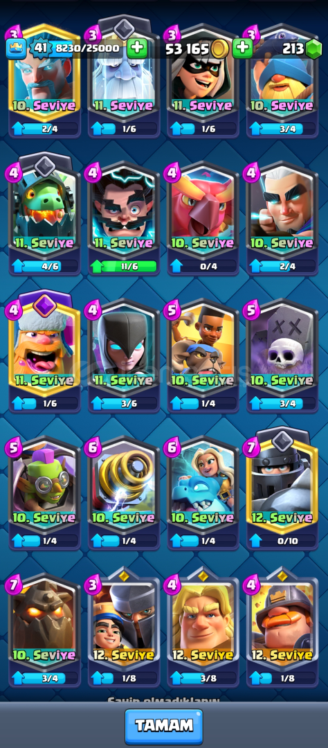 ⭐ Öncelikle Bizi Tercih Ettiğiniz İçin Teşekkürler ⭐⭐29 Sıradan Kart⭐⭐30 Ender Kart ⭐⭐33 Destansi Kart ⭐⭐21 Efsanevi Kart ⭐⭐3 Şampiyon Kart ⭐⭐7 Evrimli Kart ⭐⭐E Posta Değişir ✅⭐