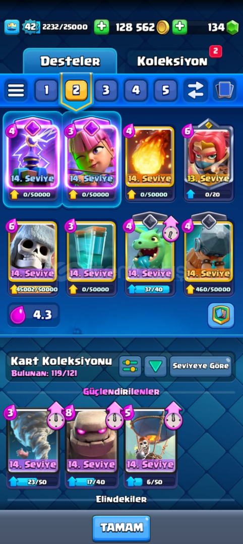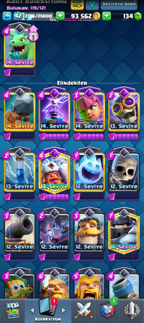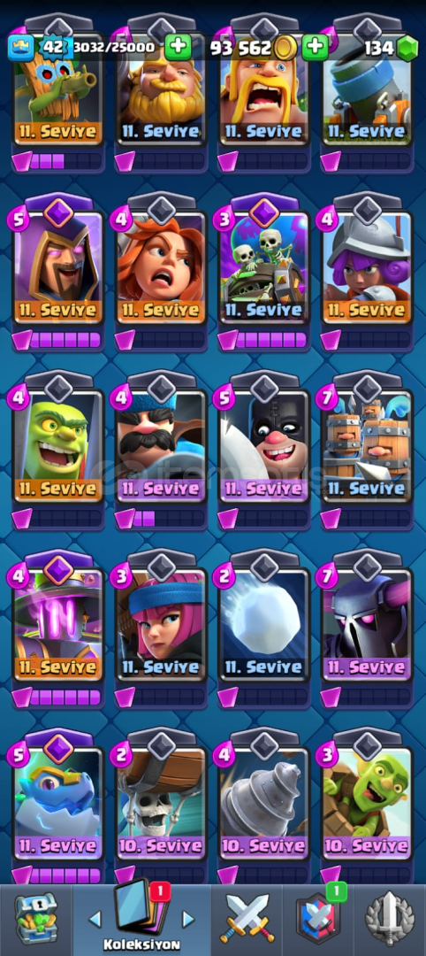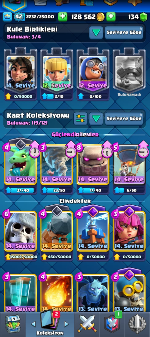 119 KART SADECE 2 KART EKSİKmail ve sifre verilcektir8500 kupa42 LEVELKARTLAR MAKSA YAKIN