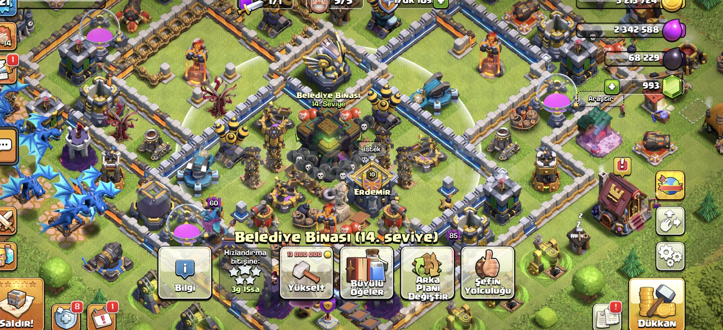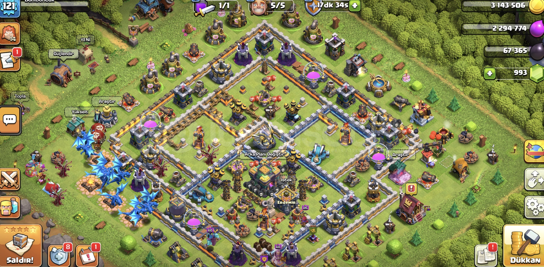 8 EVRİMLİ 9 bin kupa 45 seviye hesap +COC