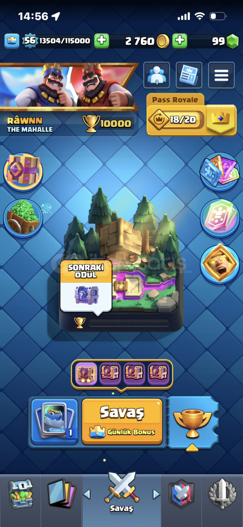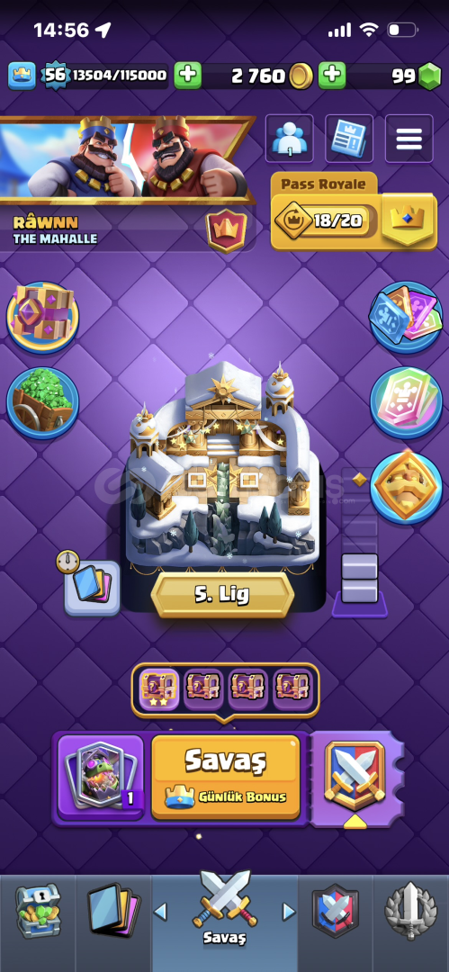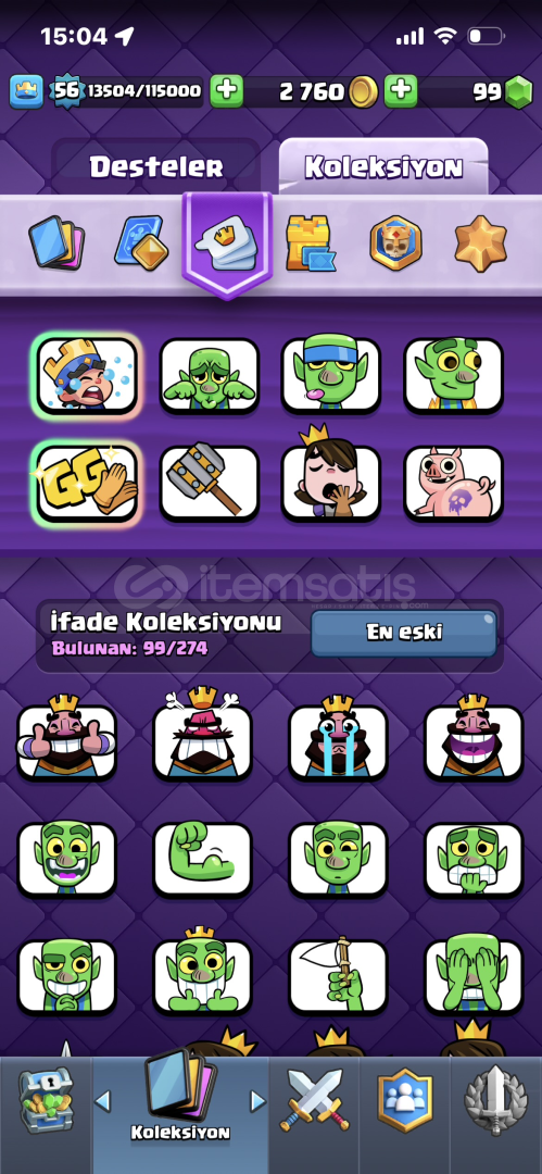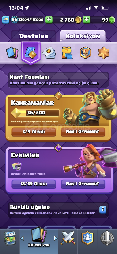 Hesabın içerisinde kahraman şövalye ve mini pekka vardır. 121/121 kart, 18 evrim, 99 ifade ve 8 tane kule görün&u...