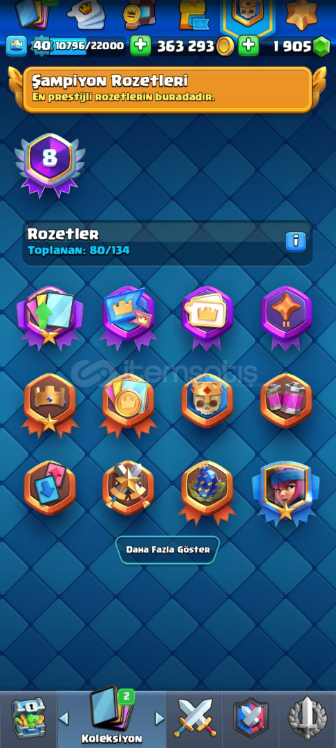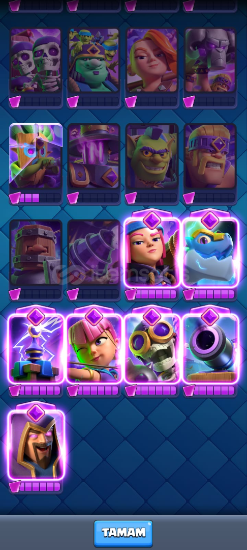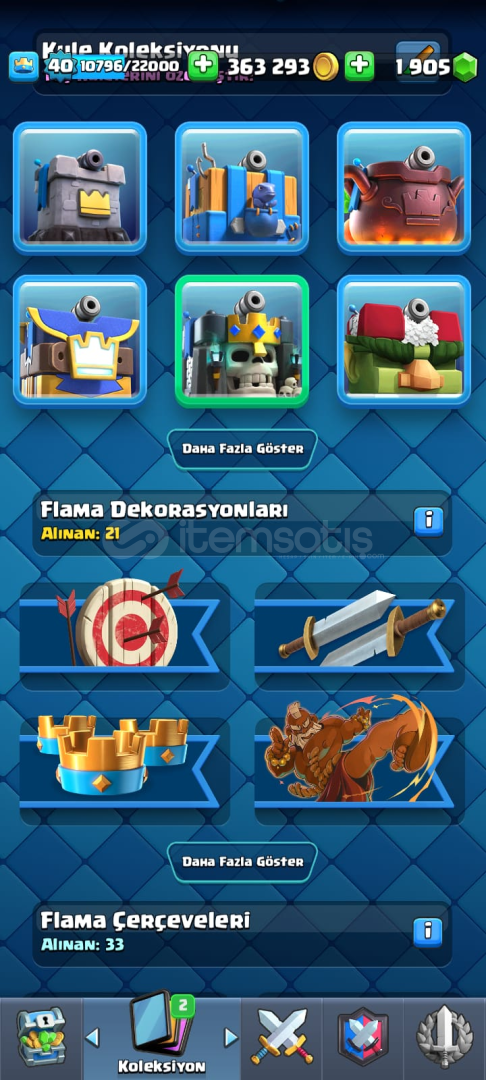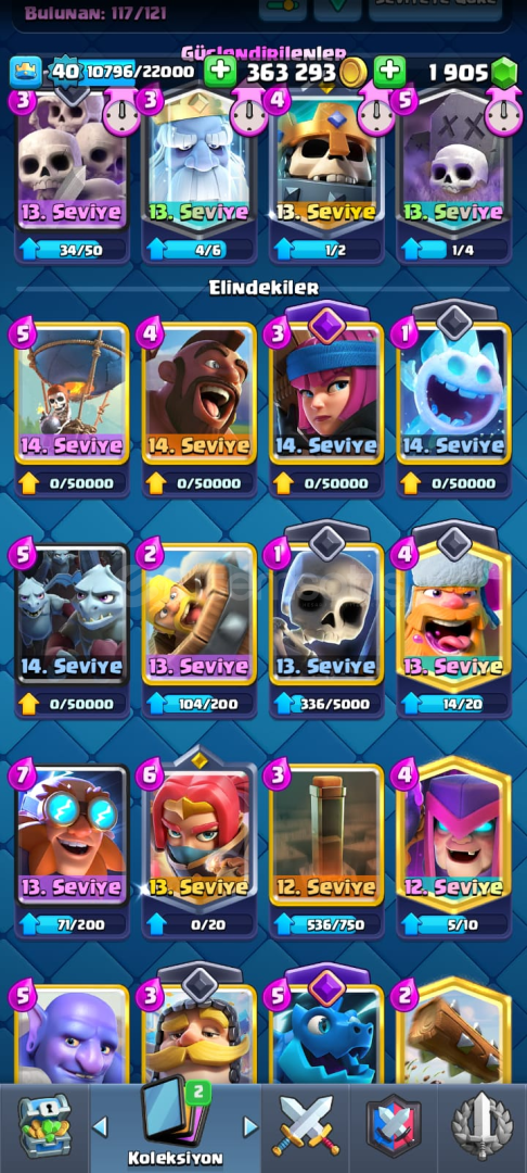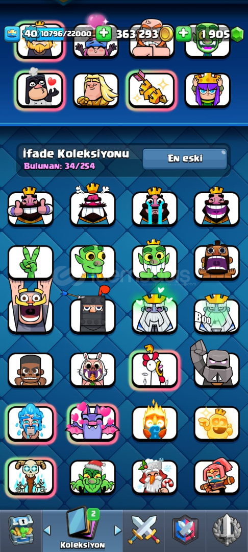hesap 8 yıllık tır.kupa:7704seviye:40elmas:1905altın:363 293max kart sayısı:5emoji:34kule görünümü:5verdiginiz e posta ile degisir tel dogrulaması yoktur.