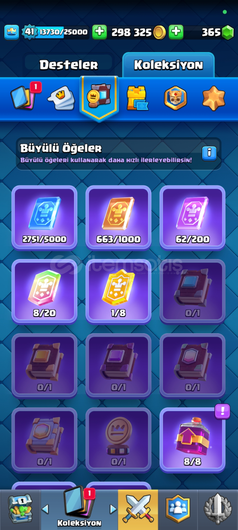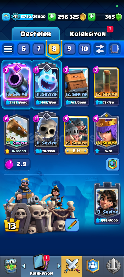 Emek hesabıdır kartların hepsi yükselmeye yakın istediğiniz desteyi anında yüksek seviyelere çıkartabilirsiniz isteyene 25k bs hesabı hediye 6 Evrimlidir oduncu Avcı ve dart goblin Evrimine 3 parçacık tek kalmıştır.