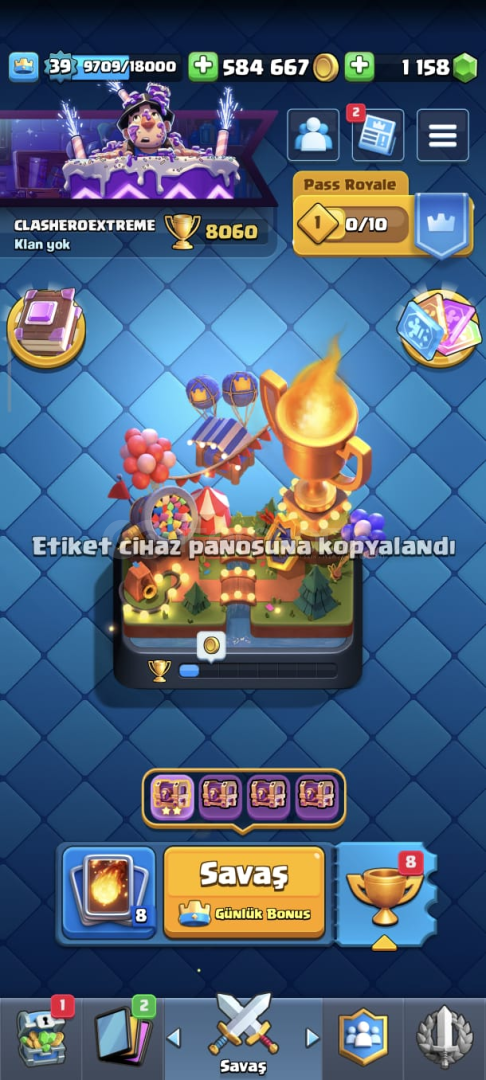 Yeni güncelleme sebebiyle sezon geçişlerinde CLASH ROYALE HESAPLARINDA kupa kaybı yaşanabiliyor bilginize.