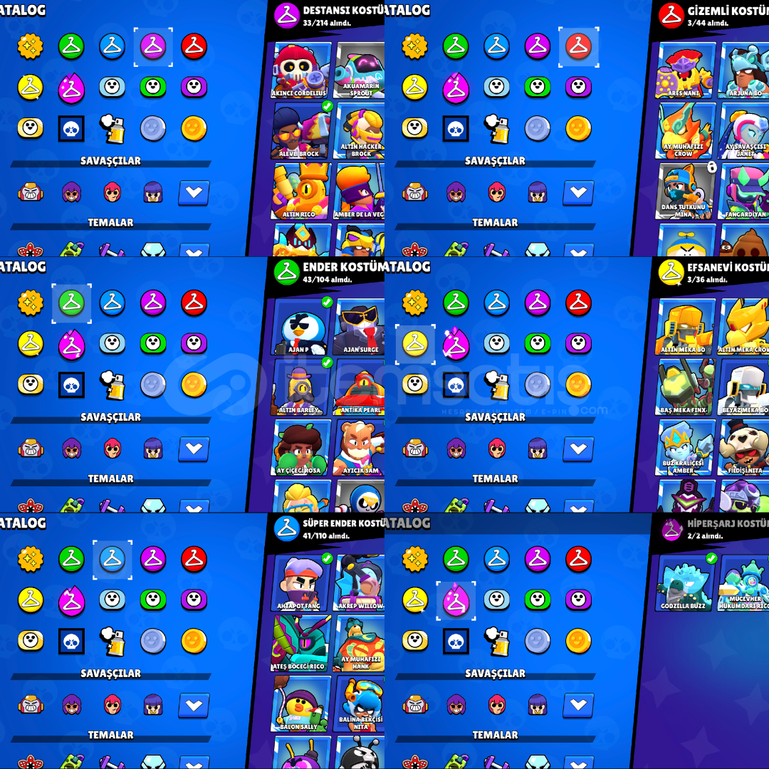 Birçok kostüm kategorisinde yüksek sayıda skin