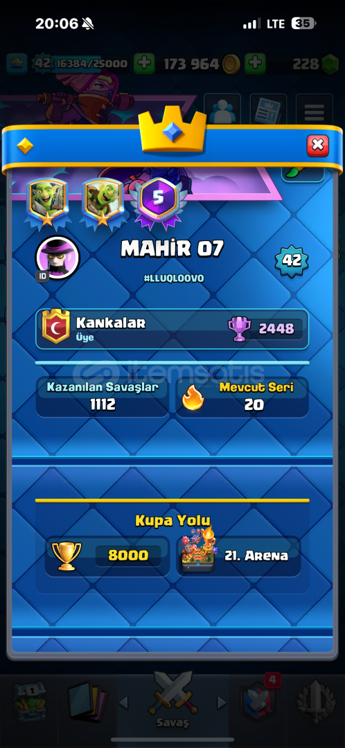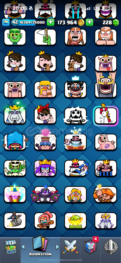 4-5 yıldır hesap bende oynamadığım için satıyorum geleni fiyatta kırmam 3-4 tane evrimli kart var 5-6 tane 14-15 level kartlar var