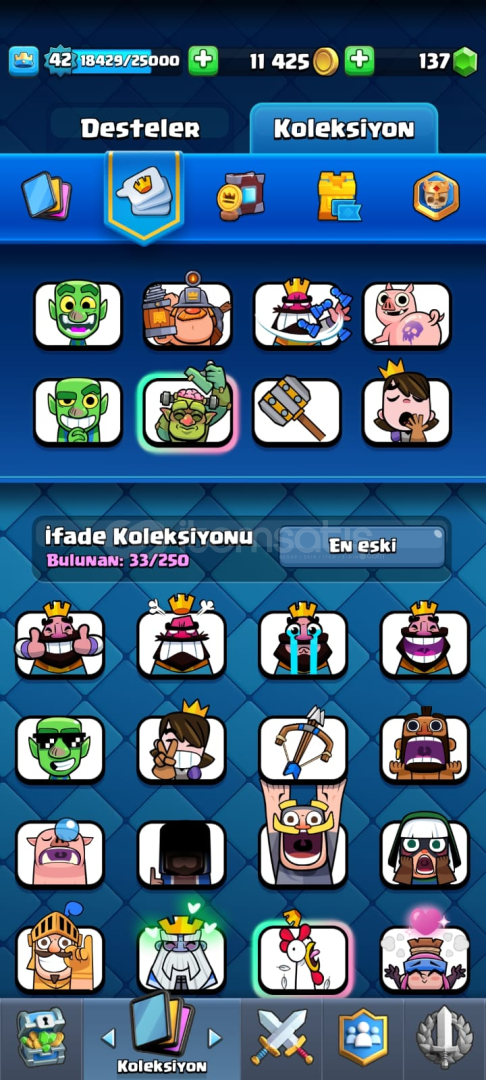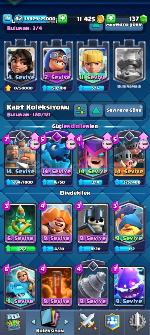 8034 kupa 7 evrimli tokmak ve bircok guzel emojili dop dolu hesap hesapta 15 seviye elit cadı vardır 14 seviye evrimli mega sovalye ve guçlu madencı haric tum kartlar vardır fiyatta bişeyler yapraız