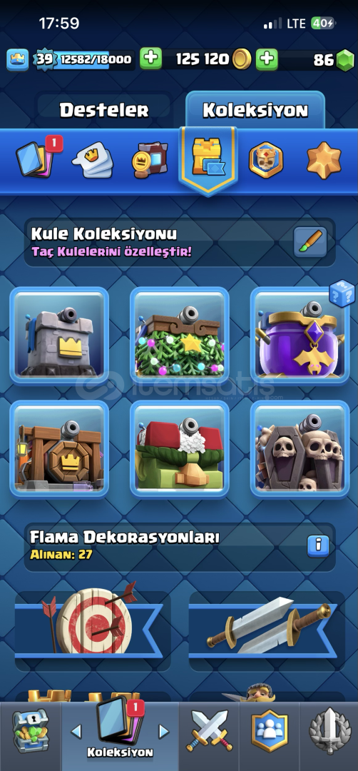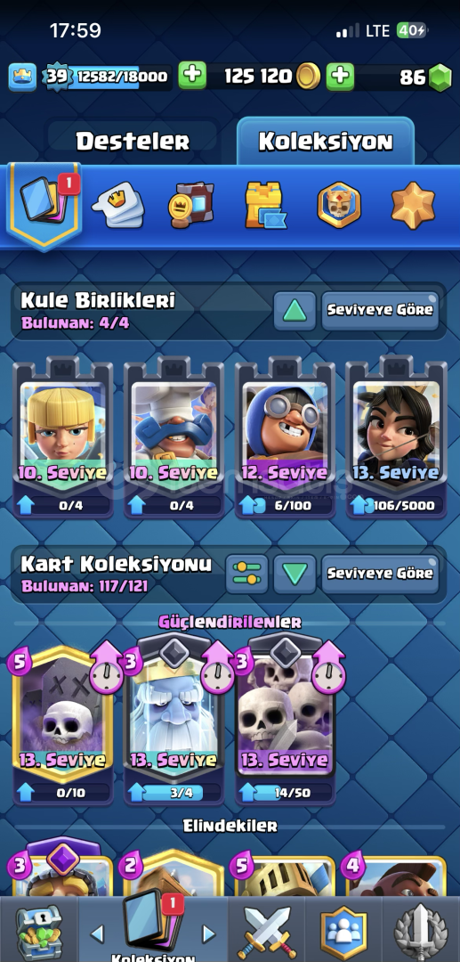 Hesapta 4 Evrim 119 adet kart vardırKule krallarının hepsi açıktır+30 Adet emoji çoğunluğu nadirdir6 adet kule deseni bulunmaktadırHesap mail devir yapılarak teslim edilecektirPazarlık sünnettendir tabiikide dozunda+100 den fazla başarılı işlem ile sorunsuz alışveriş için tercih edebilirsiniz