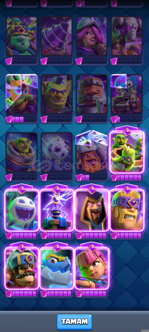 Mail değişimi yapılacaktır8 adet Evrim bulunmaktadırFotoğraftaki gibidir sormak istediğiniz başka soru varsa dm'den ulaşabilirsiniz.Sadece boss haydut,Küçük prens ve goblinstein yoktur diğer tüm kartlar açıktır
