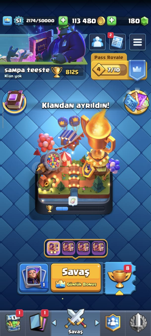 Yeni güncelleme sebebiyle sezon geçişlerinde CLASH ROYALE HESAPLARINDA kupa kaybı yaşanabiliyor bilginize.