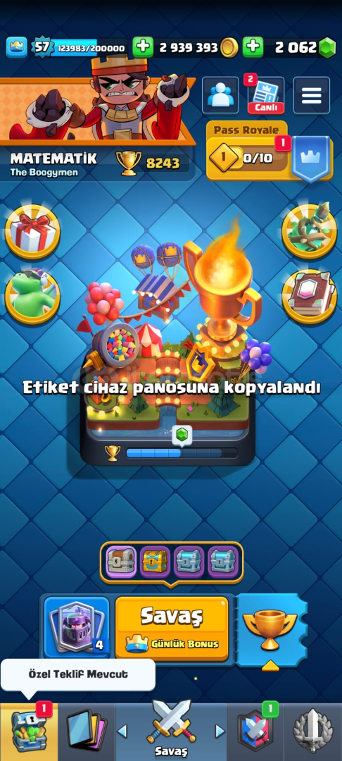 Yeni güncelleme sebebiyle sezon geçişlerinde CLASH ROYALE HESAPLARINDA kupa kaybı yaşanabiliyor bilginize.