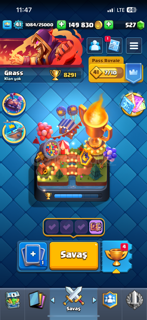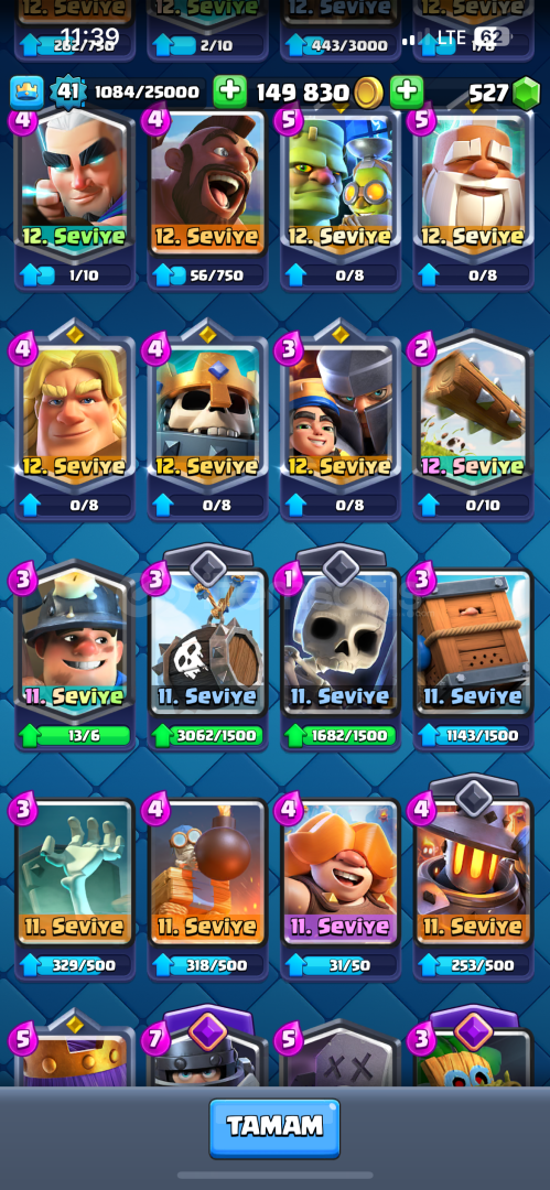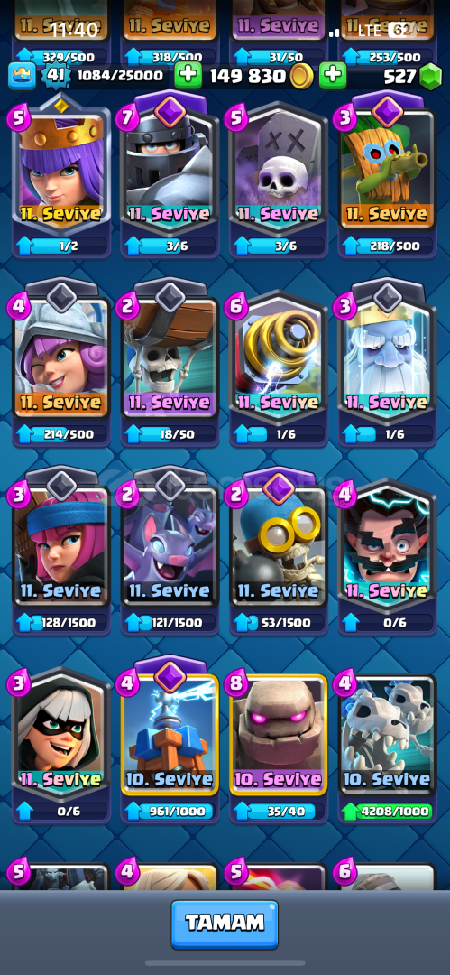 KART LEVELLERİNİ GÖRMEK İÇİN FOTOĞRAFLARA BAKINHESAPTA GAYET GÜZEL STİCKERLAR VARDIR HEPSİ FOTOĞRAFTAHESAP ALININCA TAMAMEN SİZİN OLUR Evrimler : 1) Mega Şovalye2) Dart Goblin3) Tesla4) Okçular5 ) Valkür6) Büyücü7) Elektro Ejder8) Bombacı