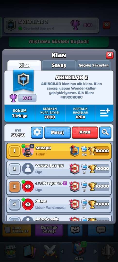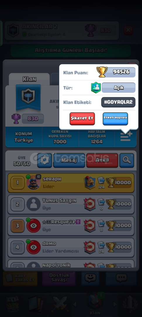 Klan Full doludur klan savaşlarında genellikle 1. oluyor. [ Son 10 Klan savaşında sırf bir kere 2. olmuştur geri kalanında full 1. bitirmiştir. ]. Klanı oyuna vakit ayıramadığım için satıyorum.