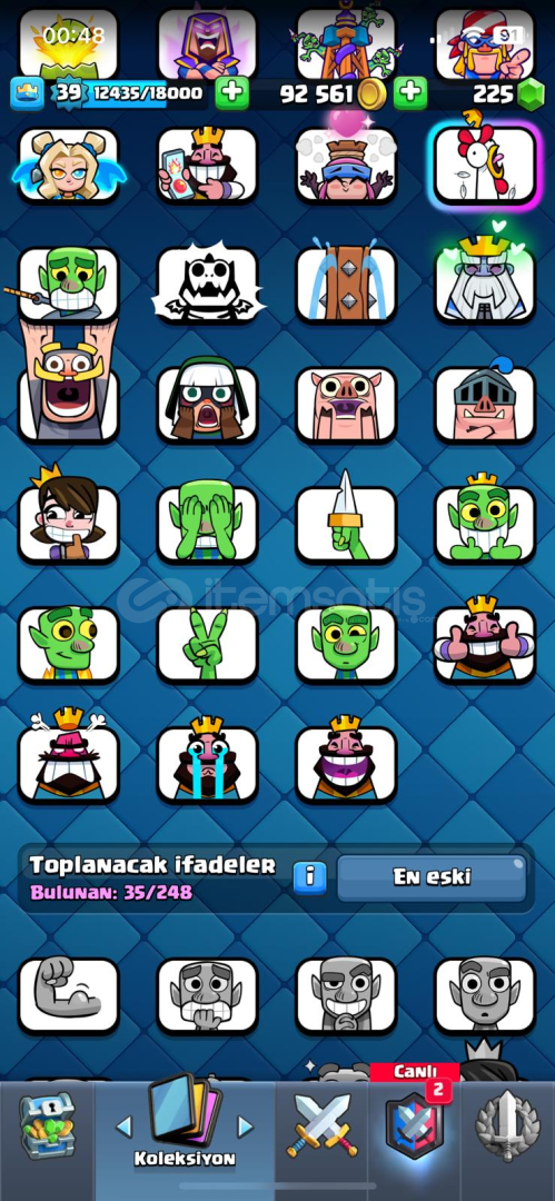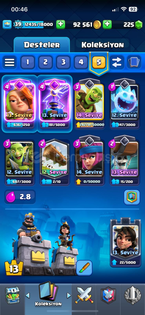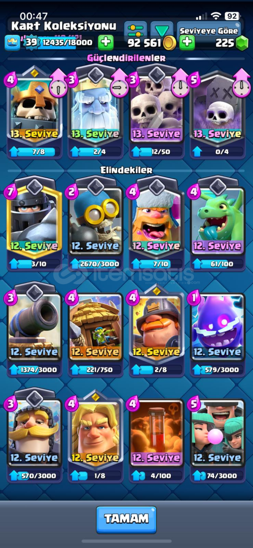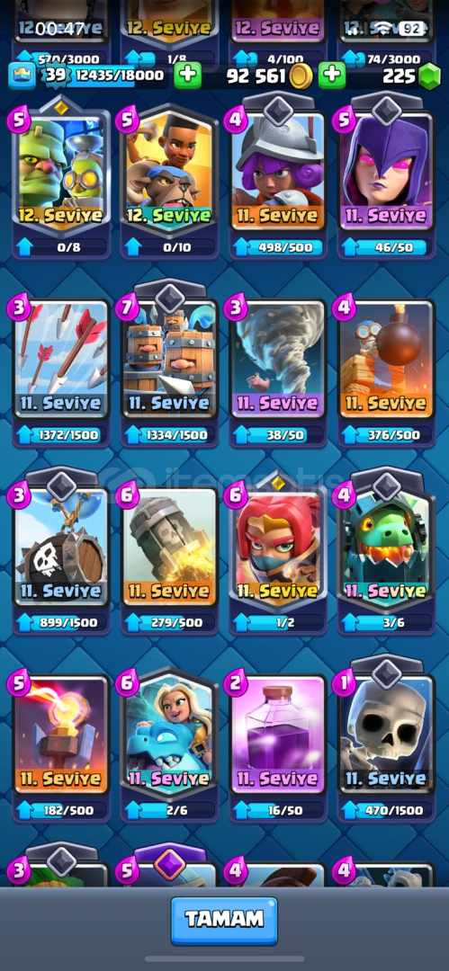 Aktif olmasam bile 7/24 satın alabilirsiniz otomatik teslimattır.Hesap ta tek supercell id girişi vardır supercell id ye bağlı olduğu mail ile teslim edilmektedir.39 Seviye8300 KupaEvrimler Valkür,Tesla,Büyücü,Elektro ejder,Okçular,oduncu için 1 evrim gerekli.İsim değiştirme hakkı mevcuttur.3 Şampiyon hariç diğer tüm kartlar açıktırKaliteli ifadeler vardır.Resimler...