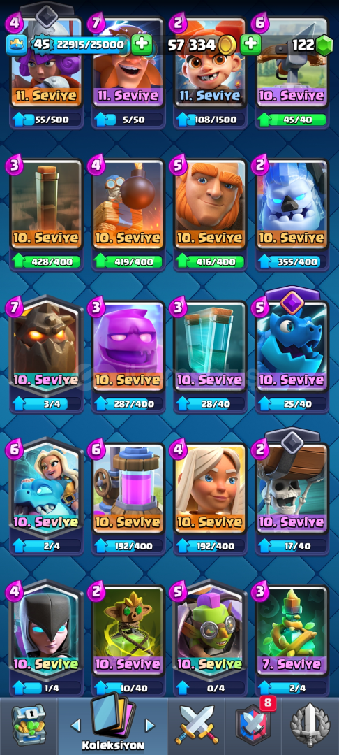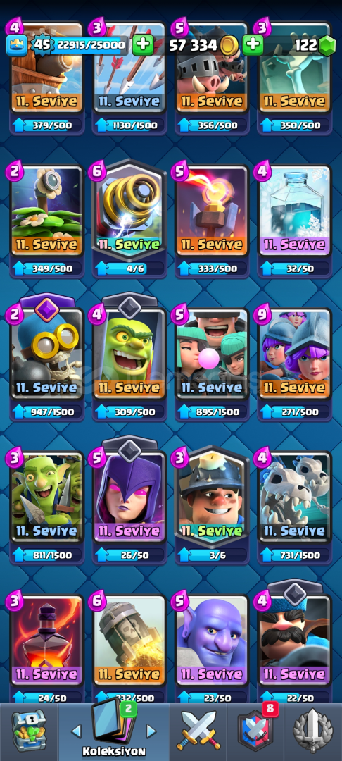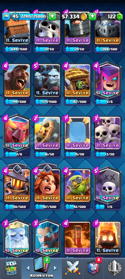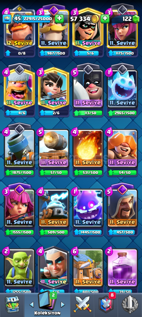 HESAP TEK BAĞDIR KORUMA YOKTUR DİREK SİZİN MAİLİNZE AKTARILACAK ALICIYA HAYIRLI OLSUN HESAPTA 67K ELİT JOKER KART VARDIR 3 EVRİM KARTI VE 8 EVRİMLİ KART VARDIR HESAP 45 SEVİYEDEDİR ALICIYA HAYIRLI OLSUN SİMDİDEN